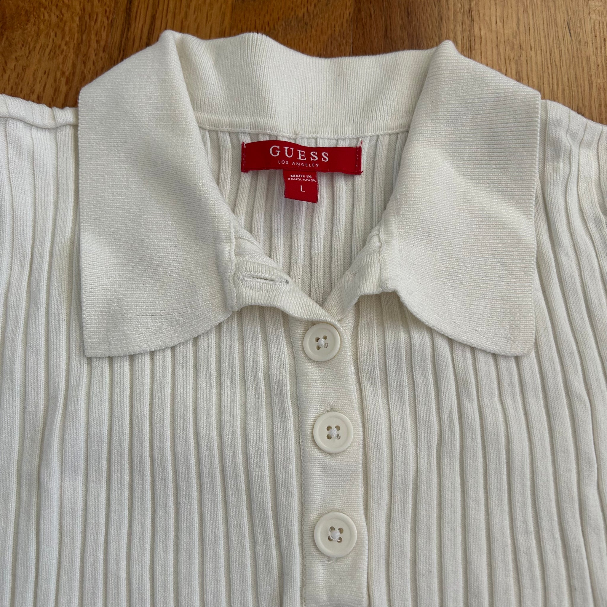 adorable stretchy Guess knit top ~ featuring functional buttons ~
